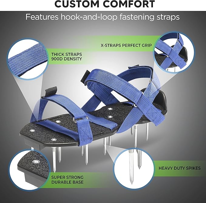 Envy Green Lawn Aerator Shoes – Ready-to-Use, Pre-Assembled – One-Size-Fits-All Gardening Shoes – Lawn Aerator with X-Strap – Lawn Aerator Spike Shoes for Lawn and Yard – Premium Tools by EnvyGreen