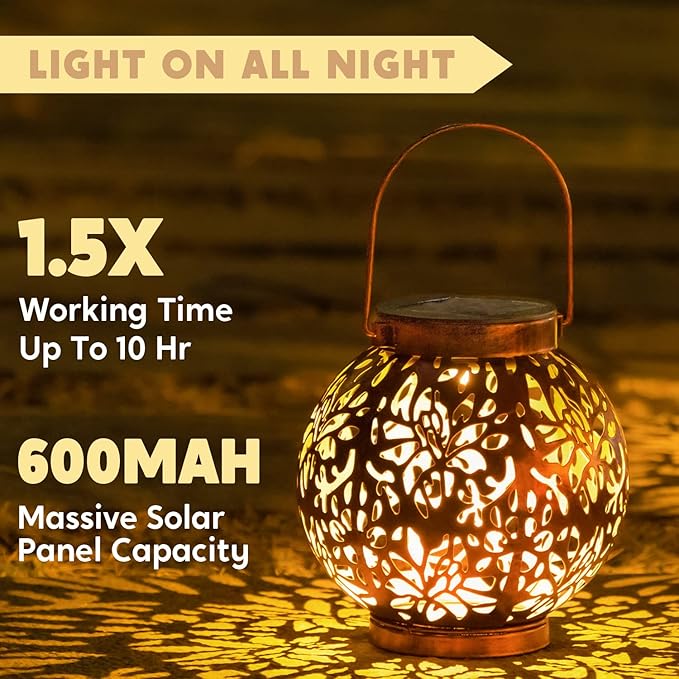 About This LONG-LASTING SOLAR LED BULB: Our 2 Sets of Beautiful Stenciled flower shaped Solar Lights Lantern projects illuminated patterns... Read more