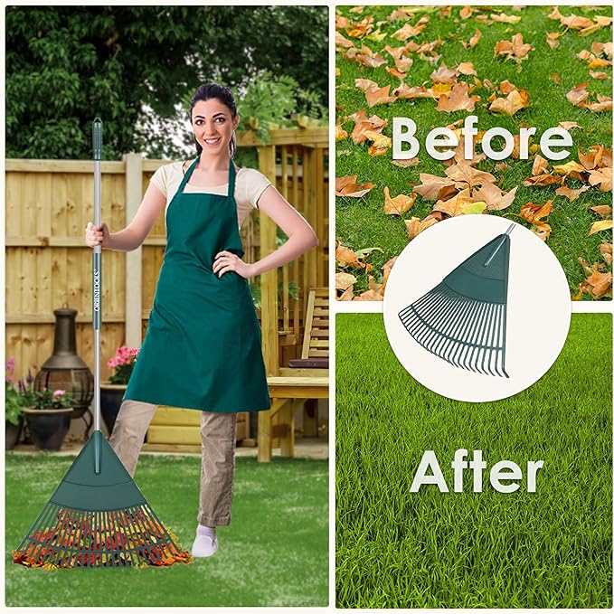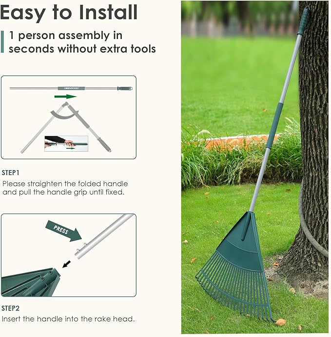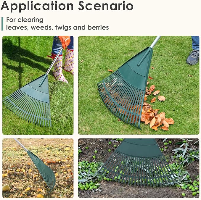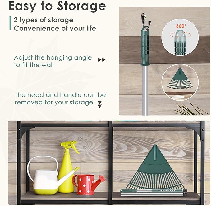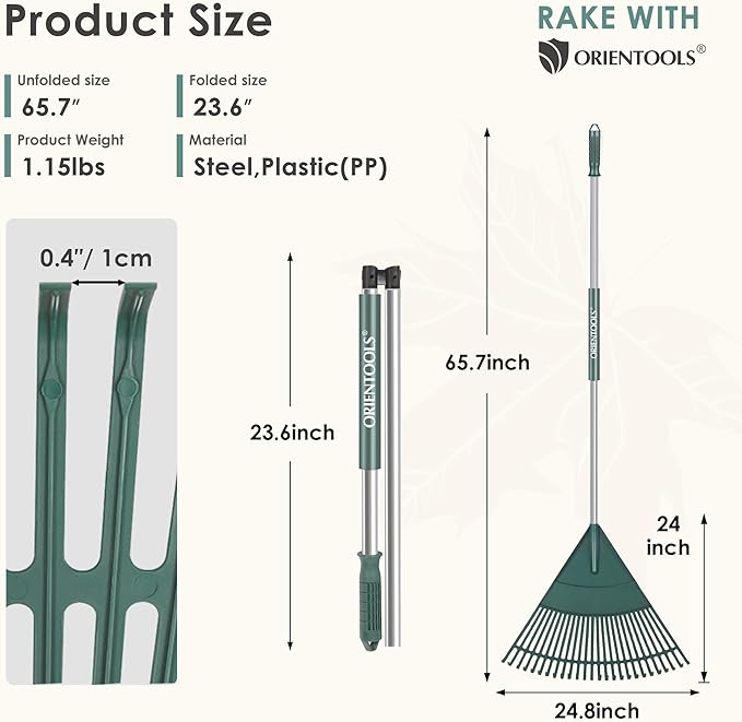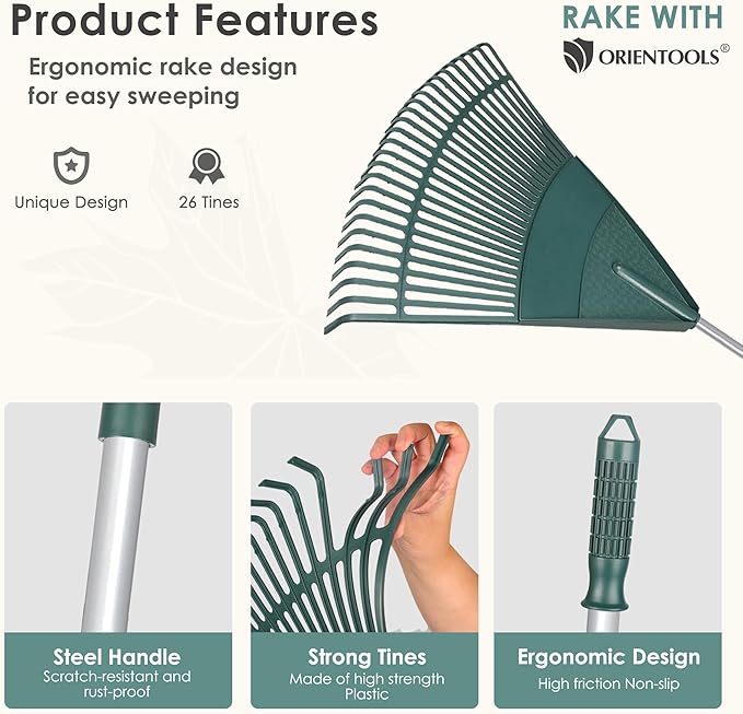 ORIENTOOLS Garden Leaf Rake, Garden Rakes for Lawns Leaves with 65.7" Foldable Handle Rake, 26 Strong Tines Plastic Head Shrub Rake, Yard Garden Rake for Lawns, Grass, Flower Beds Leaves Cleaning